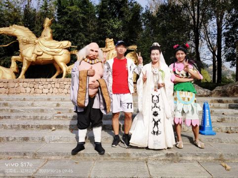 2、景区线路呈“日”字形,共有南门、东门、北门3个门,南门是主门,每天9:30门口会有演出《大圣迎宾》,内容是齐天大圣孙悟空宴请天界众仙,搞恶作剧将其定身,后与哪吒大战一场。演出较为精彩,哪吒会喷火,表演结束后还能与众仙合影,不乏帅哥美女,很有带入感。另外,此处10:30有《西游大联欢》、下午16:00有《齐天大圣》、《西游大联欢》。