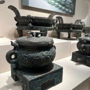 • 曾侯乙墓展厅:战国九鼎八簋列阵而立,纹饰繁复的菱形勾连云纹铜敦流淌着神秘光泽。最令人屏息的当属曾侯乙编钟(复制品)——65件青铜钟架悬于眼前,虽真品外展未归,但讲解员描述它出土时“音域跨越五度,历经2400年仍可奏《楚商》”,瞬间将我拉回那个礼乐文明的巅峰时代。