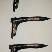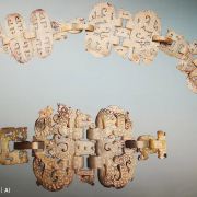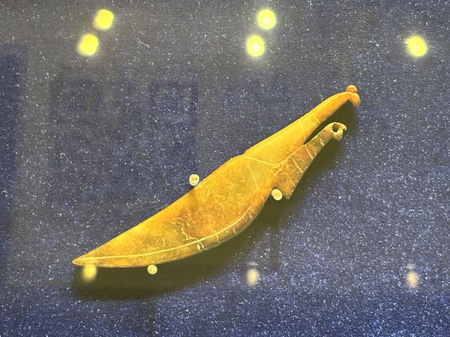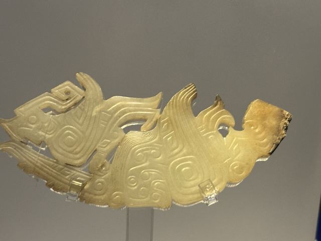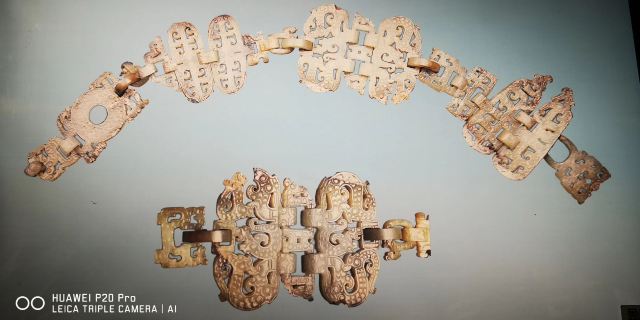 5分 超棒擂鼓墩曾侯乙墓除了出土了大型的编钟和编磬外,还有大量精美的高玉,这些雕琢各异的玉佩,环环相扣,竟然是是用一块整玉雕琢打磨而成的……。战国年代,诸侯争霸,战事连绵不断,戟是当时步兵常用的冷兵器,对付骑兵、马拉的战车非常有效。这次在擂鼓墩博物馆看到一把“殳”(读shu输)头,非常好奇,经当年参加发掘的考古教授讲解,才搞清楚冷兵器“殳”的用途。殳头呈现三棱矛状,刃部铸篆字铭文,字体细若针刺;是战车上兵者的武器,配上长长的木柄,战车在冲锋陷阵时就会所向无敌哦!
