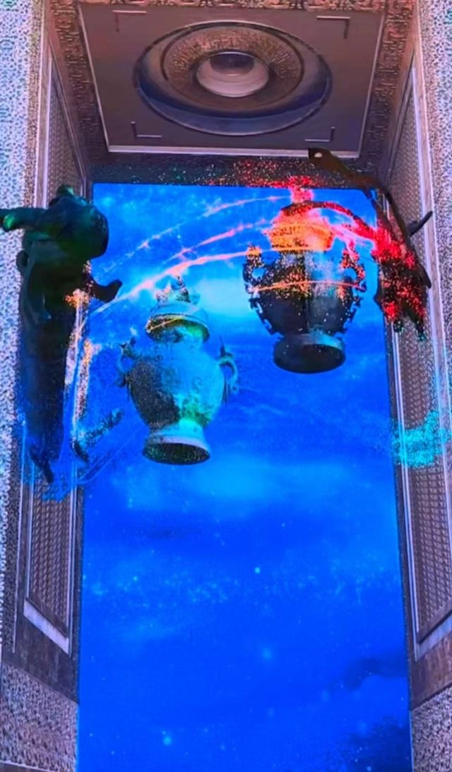 步入焕新开馆的展厅,两层楼高的巨屏上青铜礼器悬浮流转,曾侯乙编钟的蟠螭纹在眼前纤毫毕现。踩过“钟鸣寰宇”声光地屏,脚下涟漪绽开战国铭文;VR头显瞬间将我抛向战国夜宴——指尖“敲击”复刻编钟,一钟双音的《东方红》旋律从耳膜直击心脏,2400年前的乐师与我隔空共奏!