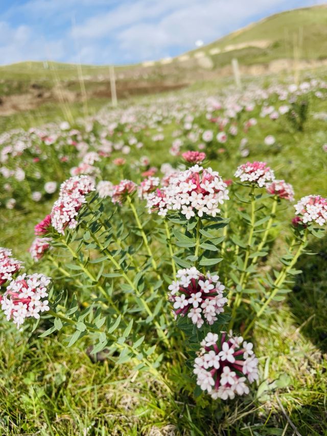 “赛罕塔拉”,意为美丽的草原。祁连雪峰下,群山峻岭旁,碧草如茵、繁花似锦。中华裕固风情走廊景区内已建成集娱乐、观光、餐饮为一体的旅游接待点两处。观景台前有久负盛名的九排松景点。人们为祈求得到山神庇护,便有了祭鄂博敬山神的活动。祭鄂博需邀请高僧诵经、煨桑、吹白海螺,抛撒 “风马”,敬献木制宝剑、长矛,期望山神以武力护佑苍生,祈求草原风调雨顺、牛羊兴旺、百姓幸福。海拔3700米,可远眺“蓝少尔岗”神山等方圆百里的山川。据说此山由腾格里山神用僧衣降服妖魔后变化而来。远处松林苍翠,云雾缭绕;脚下花草起伏,如天地间舞动的彩色锦缎,人称“百花滩”。