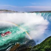 整个瀑布跨越加拿大的安大略省和美国的纽约州构成南