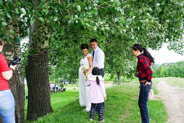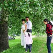今天看来是当地的好日子,好几对新人在这里拍照,办婚礼呢,小豆子很喜欢新娘子,特地摘了一些野花走过去送给她