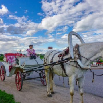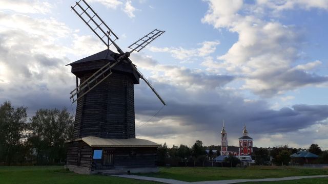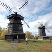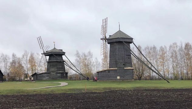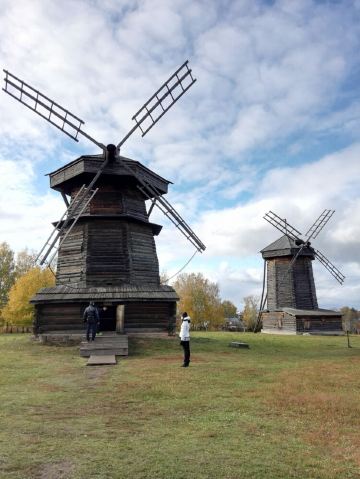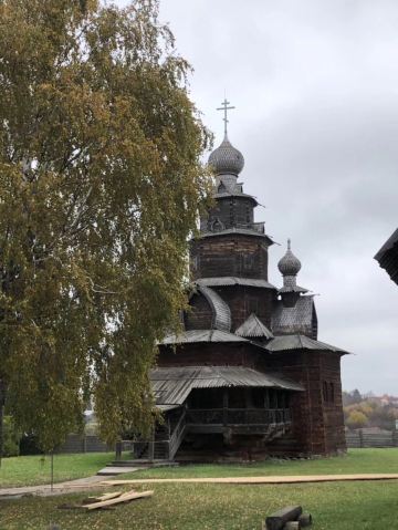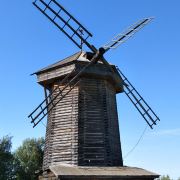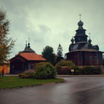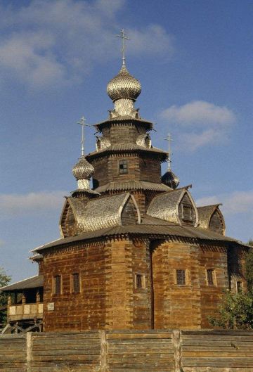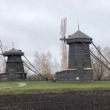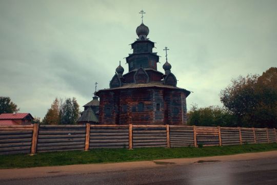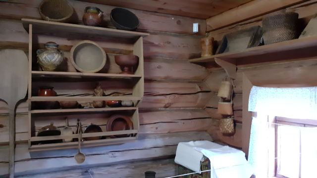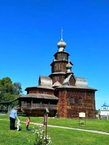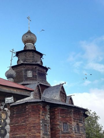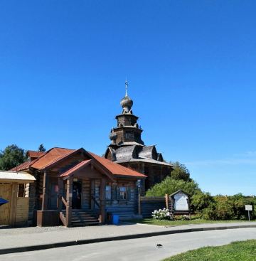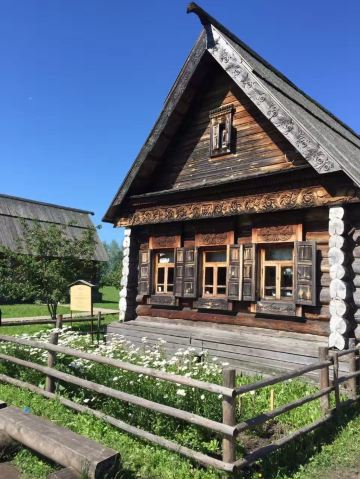 1968年所建成的木造建筑博物馆,整个博物馆是露天的,其中有从附近各地搬迁来的古代俄罗斯民居木屋,还有冬天教堂、夏天教堂,商店,一旁还有传统水井、水车、以及磨面粉用的风车,就像是几百年前的俄罗斯小镇重现眼前一样。