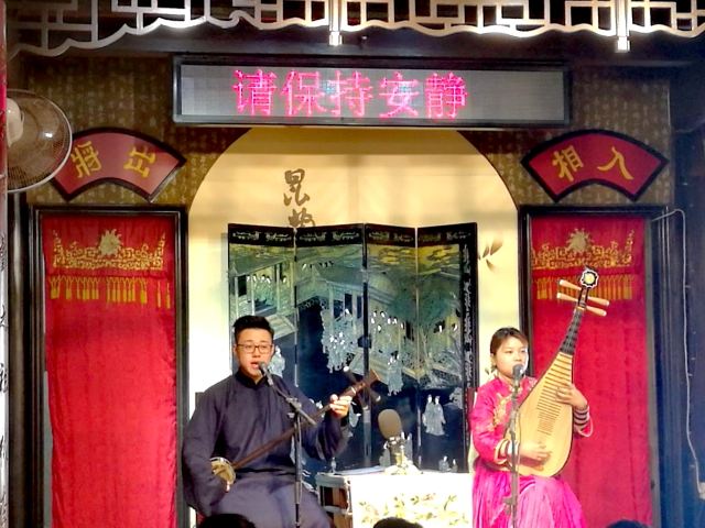5分 超棒【苏州评弹】手机查着攻略找到了评弹馆,来到苏州自然要听听吴语啦,门店在观前街,一处小型商场里,指示牌并不明显,找了好一会儿,这里是新建的场馆,更大,也更接近舞台 能和演员进行互动,表演非常精彩,感受到了评弹的美和苏州文化,深深被其吸引,值得一去,