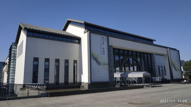 美术馆新馆落成位于北寺塔西北面,东临人民路,西抵桃花河两岸,北以校场桥路为界,是苏州古城主干道人民路北段的文化新地标。
