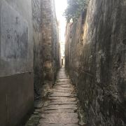 4分 满意鱼行桥旁边就是传说中的穿心弄,这是一条特别神奇的小巷,穿心弄,长约300米,宽80厘米左右,最窄的地方可能只有60厘米宽。穿心弄虽然很窄,但是依旧是铺着整齐的石板,石板之下便是流水,你走过时可以听到流水声,因此穿心弄又称之为“响板弄”。