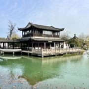 山庄为江南园林式布局,假山堆砌,错落有致的朝阳榭、耦耕堂、花信楼、燕楼、明发堂、梅圃溪堂、秋水阁,外加山庄外的月堤,构成了钱谦益笔下的“八景”。屋前都挂着对联,若是喜欢钱谦益、柳如是的诗作可以细细揣摩;年青人或是情侣可以了解下两人的爱情故事;若是都不感兴趣,拍拍照,看看尚湖水色与园林交融的美景,也十分惬意。