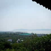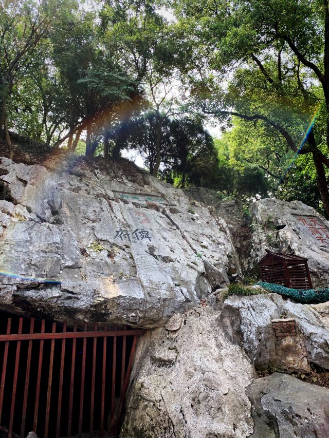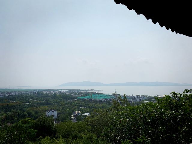 出洞后遇岔路,指向道隐园的路将带你绕回林屋洞的入口,指示牌旁的一小片摩崖石刻就是“道隐园”,走指向山顶驾浮阁的路,爬到山顶约需20分钟,山道两旁种有梅花。驾浮阁供奉道教神仙,高层第三层中间的大钟可以免费敲,外围的走廊是好的观景点,可以远眺太湖,俯看梅园花海如轻纱薄雾笼罩在山脚,很壮观。驾浮阁东边的碧螺亭也可以观景。