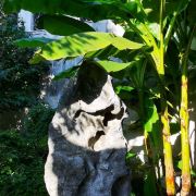 飞雪泉年久淤塞,现存遗址,后人巧用其地作为大假山山涧的源头。山涧中有险巧步石,雨后瀑布奔流而下,进入池中和主山山腹。石壁占地很少,却洞壑涧崖毕备,构筑自成一体,与主山一主一从,一正一副,极富神韵,壁间有蹬道和边楼相通。从楼上循山岩而下,可直抵水边,路径极其险峻,妙的是在岩壁合适的位置上都设有扶手石,安排得恰到好处,自然而又不留痕迹,不能不令人惊叹造园家非凡的匠心。山道尽头临水石矶随水波隐现,富有自然意趣。
