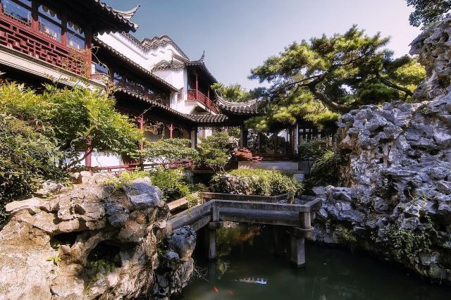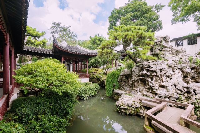微信小程序环秀山庄又名颐园,位于刺绣博物馆内,是以假山为主的一处古典园林。以山为主,池水辅之,建筑不多。园虽小,却极有气势。布局上设计巧妙得宜,湖山、池水、树木、建筑,得以融为一体;假山一座、池水一湾,更是独出心裁。