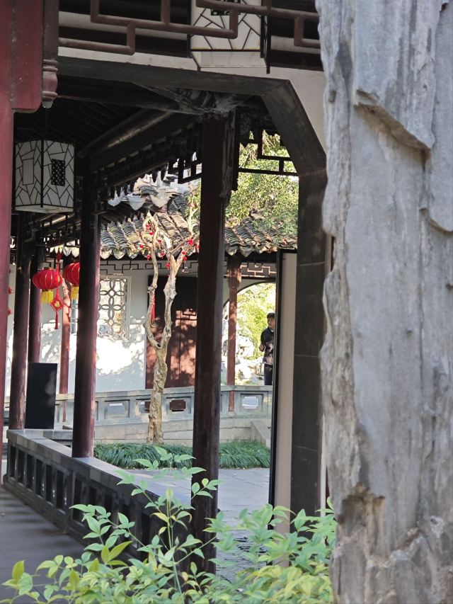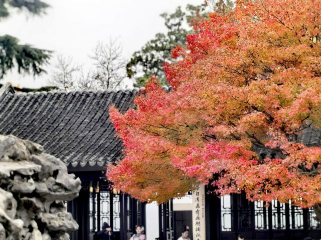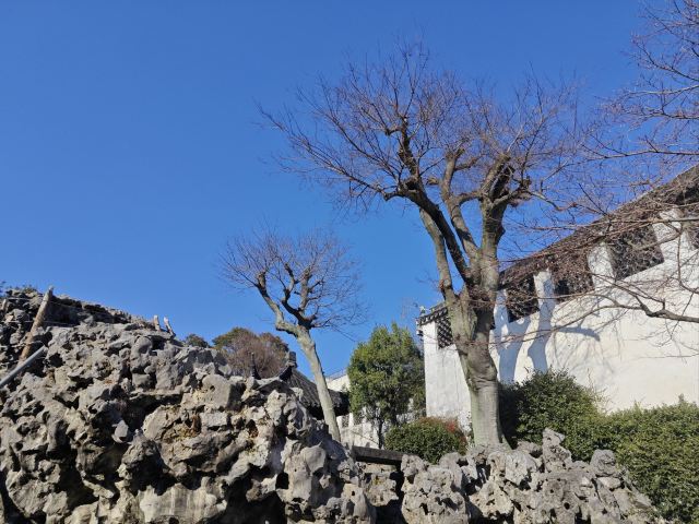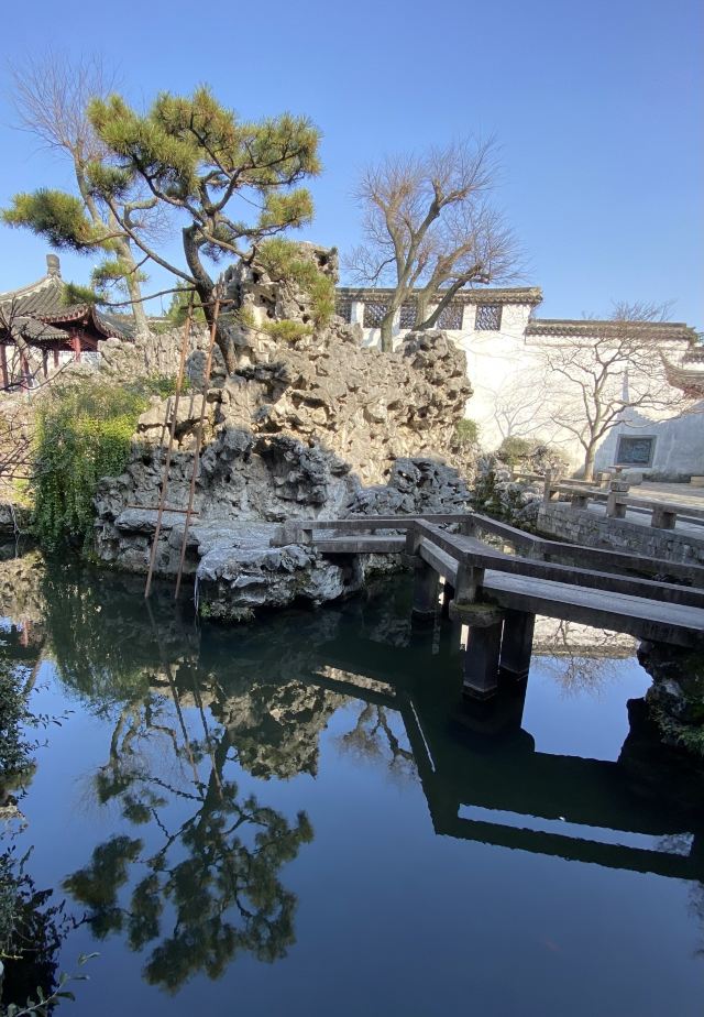 此外,假山后面有小亭,依山临水,旁侧有小崖石潭,借“素湍绿潭,四清倒影”之意,故取名“半潭秋水一房山”。在亭中观山,岩崖若画。周围林木清荫,苍枝虬干,饶有野趣。出亭北,缘石级向下,山溪低流,峰石参差,有路通往园北的“补秋舫”。舫的南面临水。此建筑面阔三间,与池南的大厅遥相呼应。