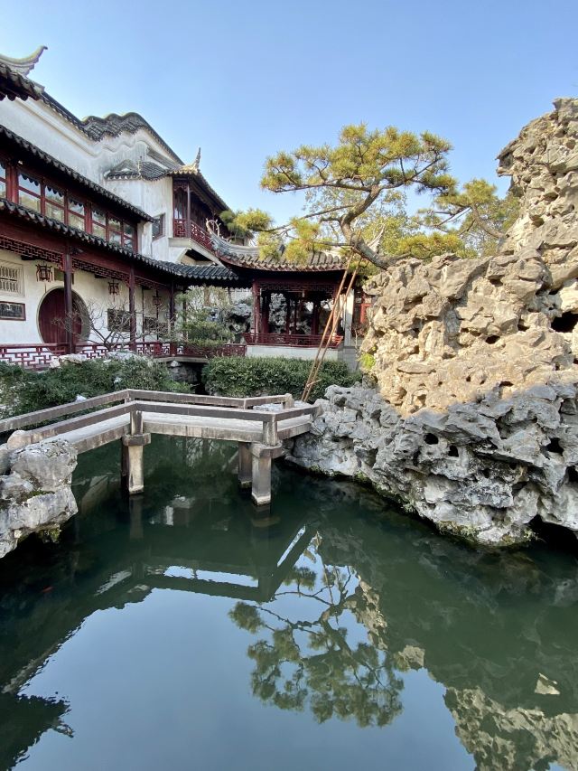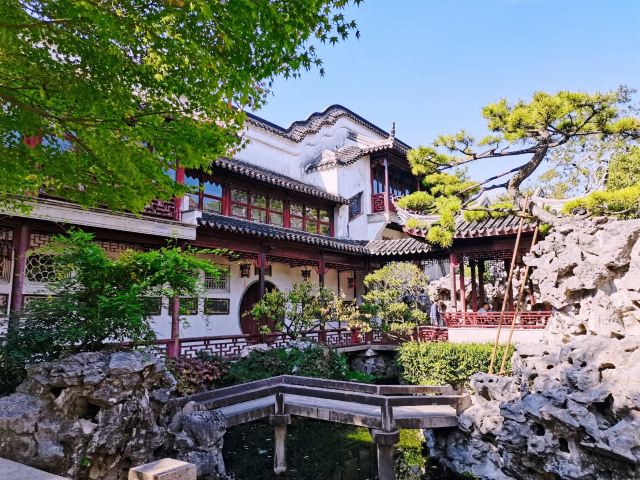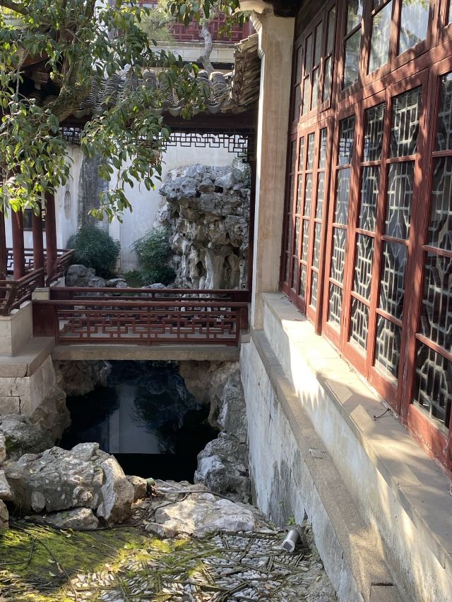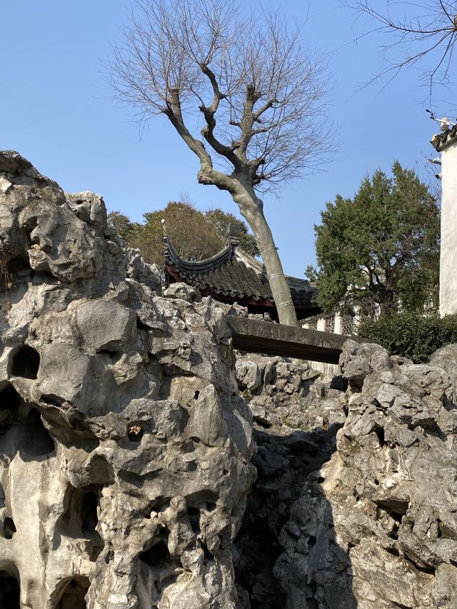 假山:山庄被列为苏州名园主要是因其假山。园内的湖石假山是清乾隆时叠山名家戈裕良所建,戈氏叠山堪称一绝,占地不过半亩,然咫尺之间,千岩万壑,环山而视,步移景易,有“独步江南”之誉。