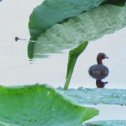 树下水声缓缓,水鸟游弋拨动清波