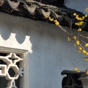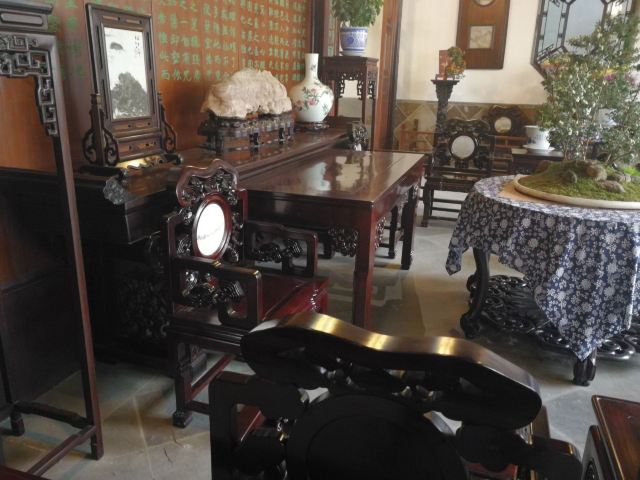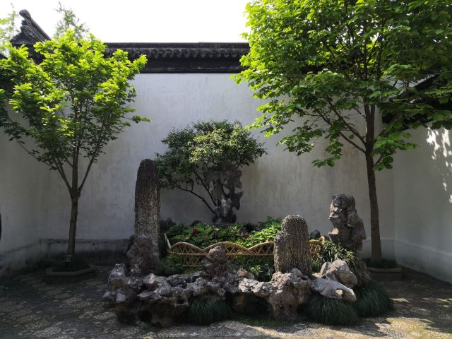 3、燕誉堂:园内主厅,是园主人宴客的场所,堂名取自《诗经•车辖》中的“式燕且誉,好尔无射”,用来赞美客人。堂的前后均有精致的小盆景布置,在门窗的孔洞中时隐时现。
