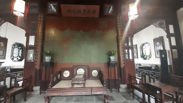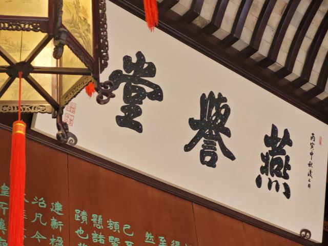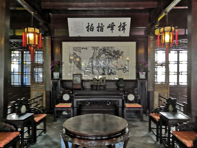 燕誉堂是苏州园林中较为著名的鸳鸯厅,一座大厅内隔南北两部分,但陈设布置各不相同,前厅常为招待贵宾,内“堂”为密友聚谈,女眷欢聚的地方。
