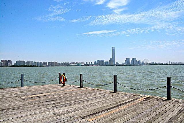 从吴中胜地虎丘山朝东远眺,只见一泓碧波在阳光下闪现着迷人的光彩,这就是位于苏州东部的金鸡湖。乘坐游船,从水上观赏金鸡湖不一样的风景。你会发现金鸡湖的碧波在阳光下闪现着迷人的光彩,十分绚丽。
