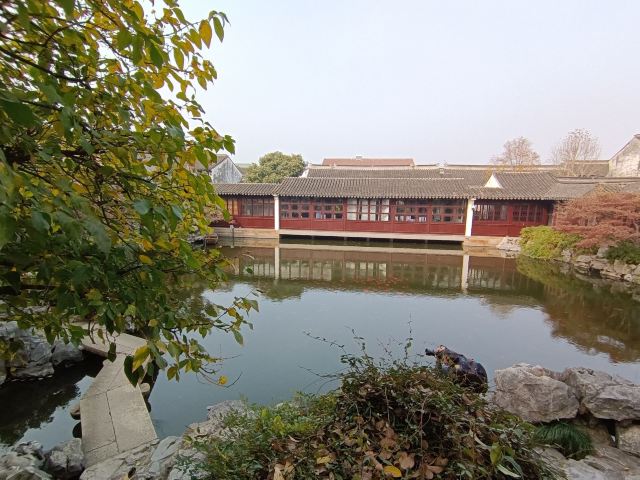 1⃣️延光阁:园子的中心,原本是当地人喜欢喝茶的茶室,正对整个池塘与假山,园子的精华就这么展现在眼前,但是疫情期间并没有开放;