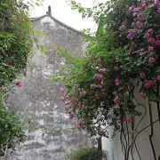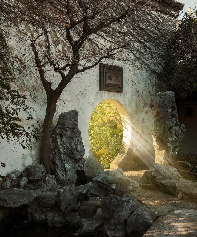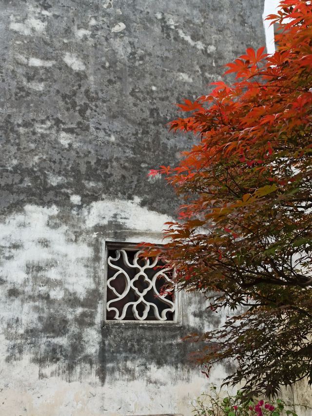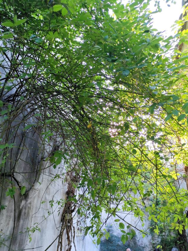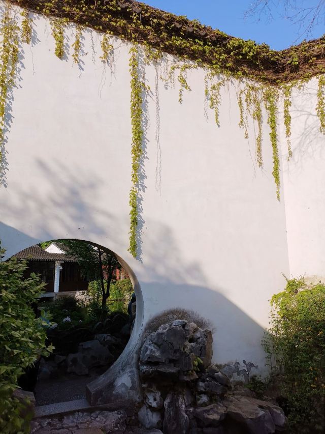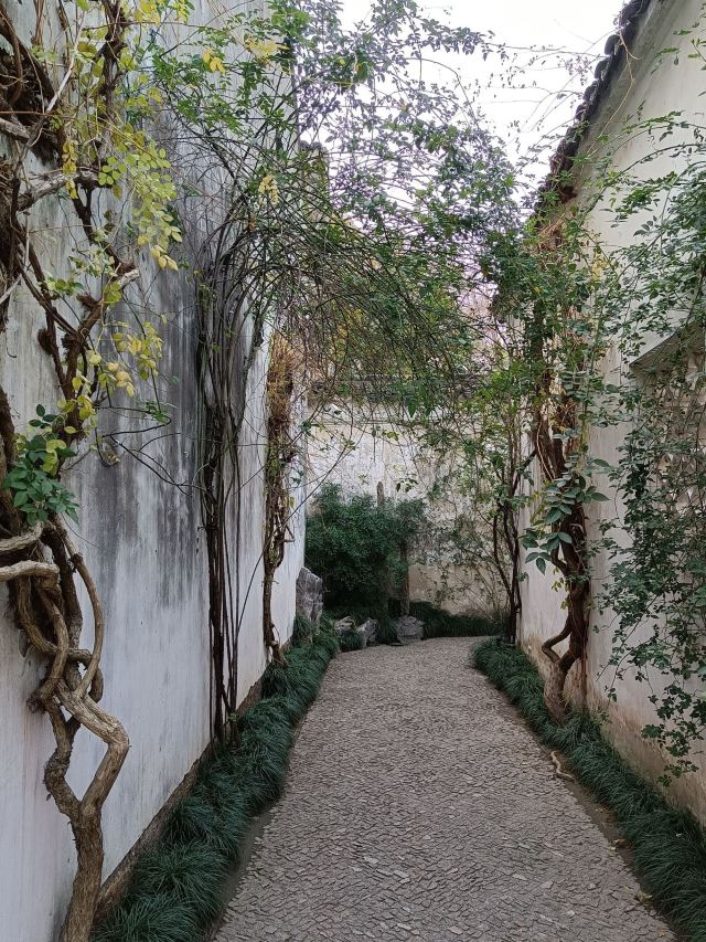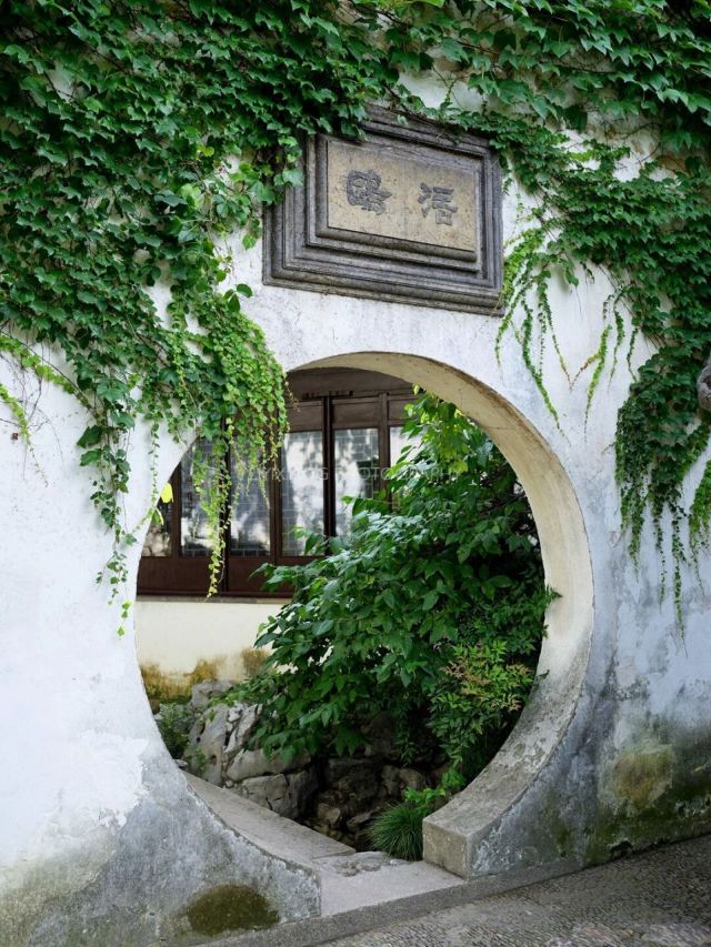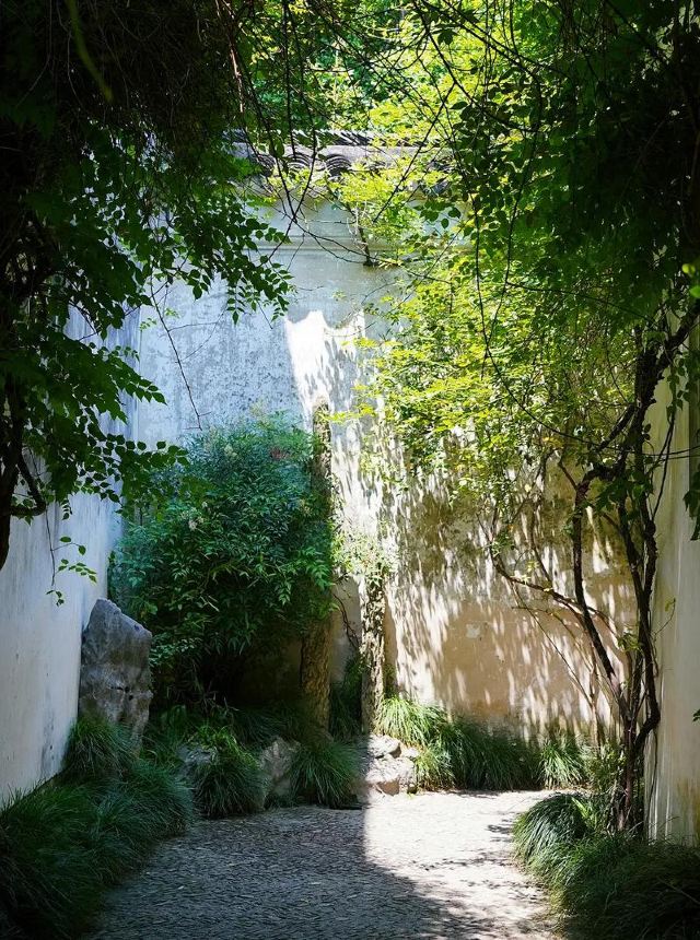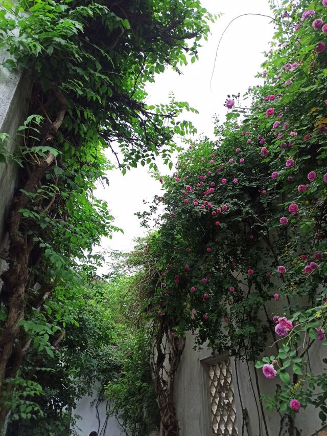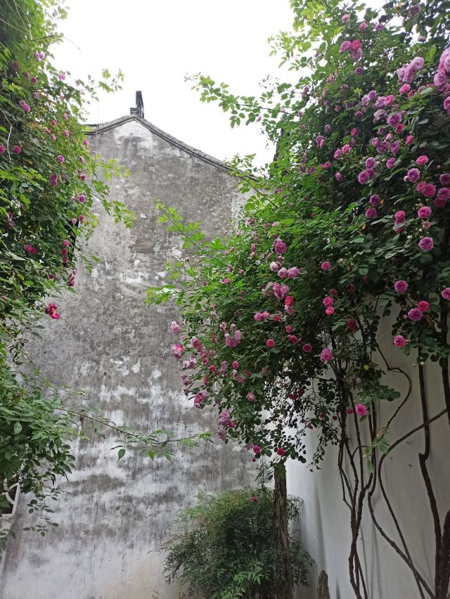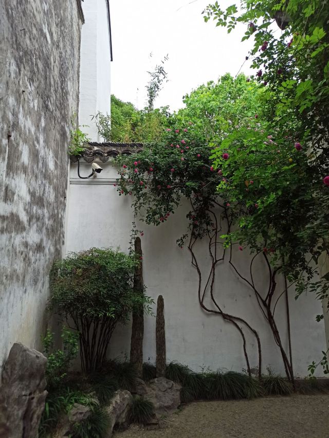 ⏱️最佳参观时间:4-5月份,正是园子里蔷薇花开的季节,进门一段小路,墙面斑驳,小小的蔷薇花点缀着白墙黛瓦,墙上石窗镶嵌,墙角假石布局,像极了油画中的秘密花园;