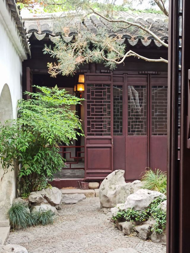艺圃不大 总占地面积约3300平米 其中住宅占了大半 前区为住宅 宅西为林 林中有湖 湖边有山 住宅前后厅之间均有院落 以砖雕门拱贯通 绿植分布其中 可谓是一步一景 处处生姿 所以 如果没有太多时间去那些大园里头人挤人 这里会是个不错的选择
