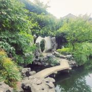 再往里,有假山,有小池塘,有亭台楼阁,撑伞的,穿汉服的,裙子花的,或者不花的,搭配起来,各有咪道。最异样的是一个男人,撑把伞,立了池塘一角的直桥上,模子还蛮大的。让人发笑。伊有自由的灵魂。蛮好。