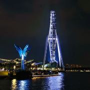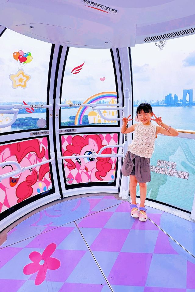 👧🏻亲子友好体验方面,摩天轮每个太空舱可容纳25人,配备双重安全系统,让孩子尽兴又安心。参观过程中看到很多爸爸妈妈带着孩子来体验,有些选择了可爱粉嫩的小马宝莉轿厢,有些偏爱王者荣耀的酷飒轿厢,还有的孩子可能幻想着离天空越来越近,坚定的选择了太空风的科技感十足的轿厢。亲子家庭可以在这一段奇幻冒险中感受到别样的魅力与浪漫。活动期间周末夜间还有“右岸仲夏夜”的演出,满足全家人的趣味需求。