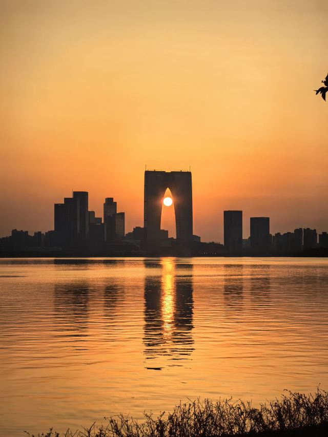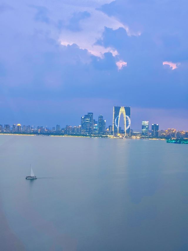 • 19:05前后,10分钟的“蓝调时刻”,金鸡湖畔的暮色与灯光交织,浪漫至极。