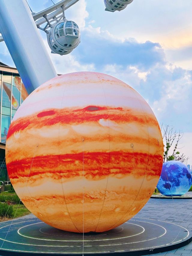 🌏眼下,这里正举办“天空幻想节”主题活动,以刘慈欣《流浪地球》IP为核心,推出了主题科幻展览,打造沉浸式科幻宇宙体验——无论是从售票厅走向摩天轮的通道,还是登上摩天轮的等候室,亦或是一部分轿厢,都纷纷穿上了流浪地球的新装,让客人一下子开始了星际穿越。