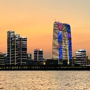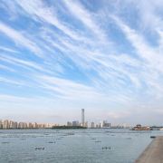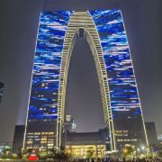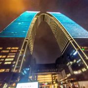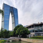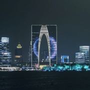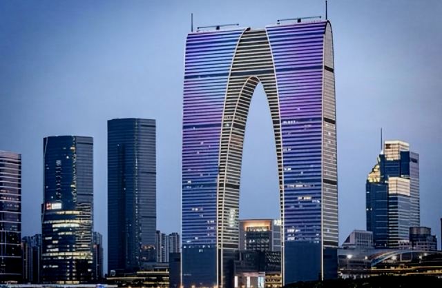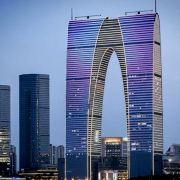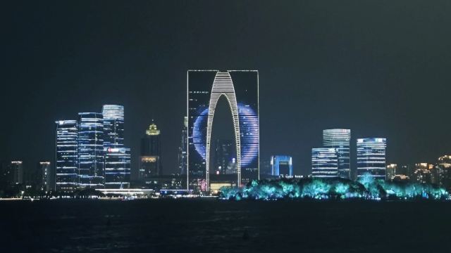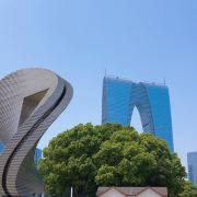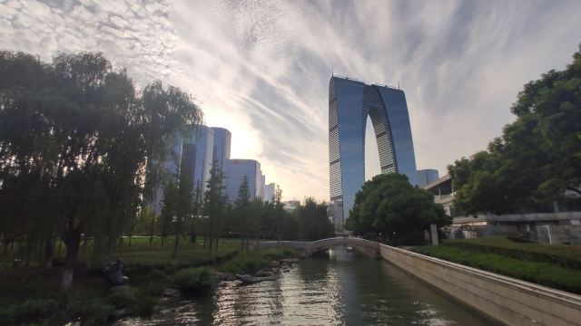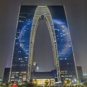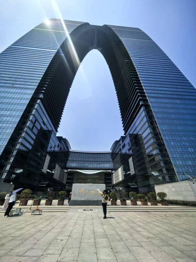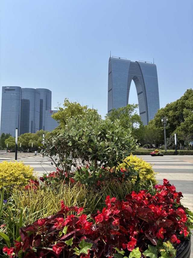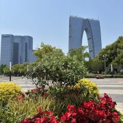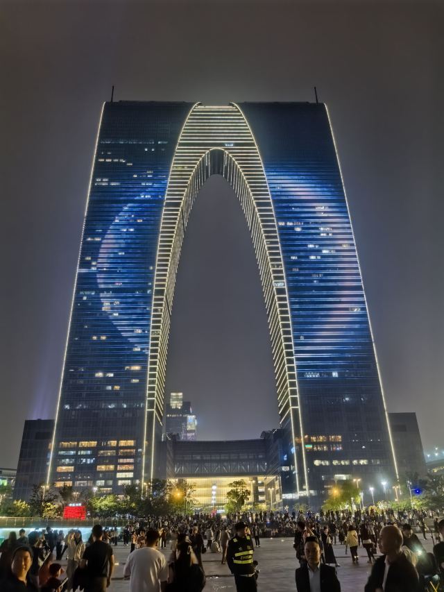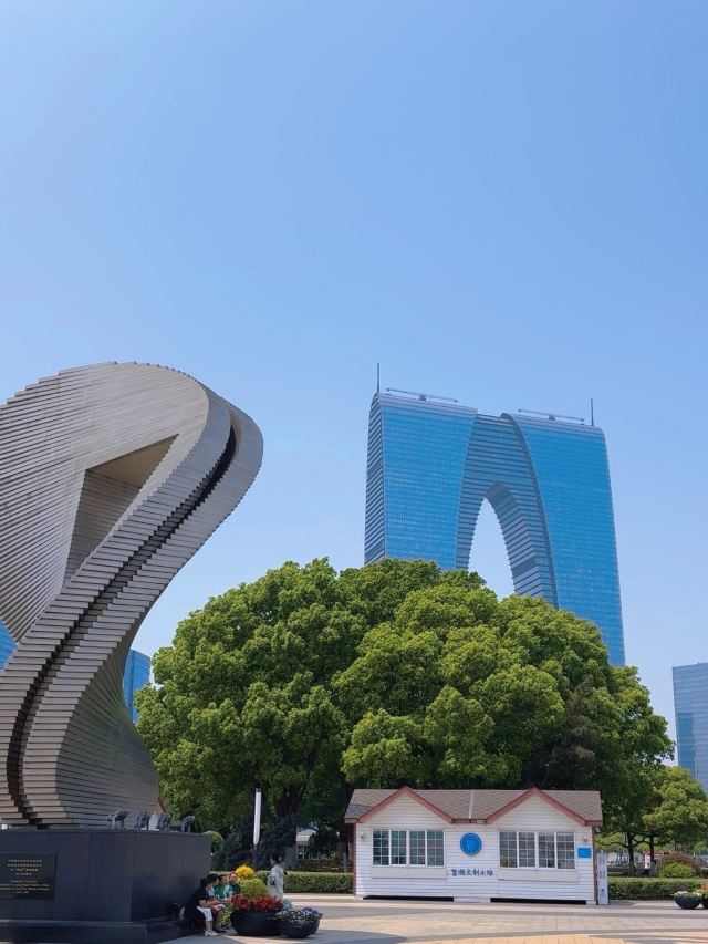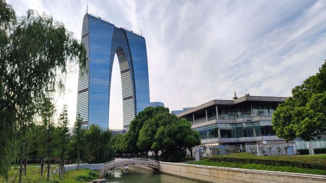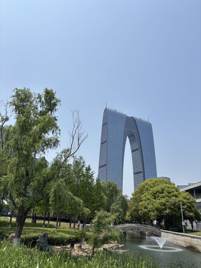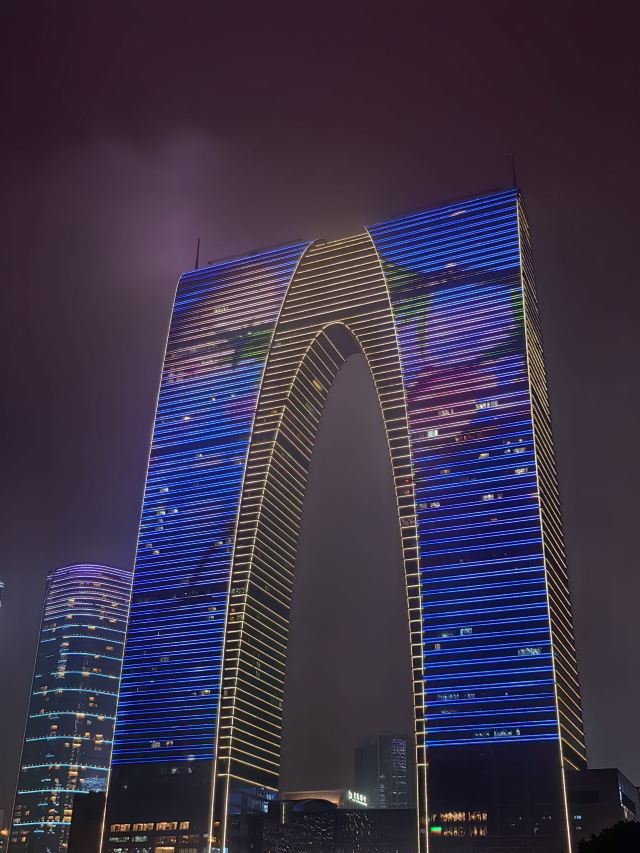 俗称“秋裤”的东方之门成为苏州网红打卡新地标,地处苏州工业园区CBD轴线的东端,东临星港街及金鸡湖。建筑顶层的空中园林,是由顶部独特的拱形玻璃幕墙体系围合出一个开敞的“温室空间”,并设计为中式古典风格的南北两套总统套房,结合现代与古典风格,很有设计感。如果想拍摄东方之门全景,月光码头是不错的摄影点。