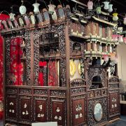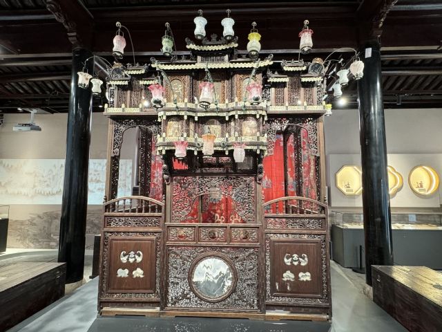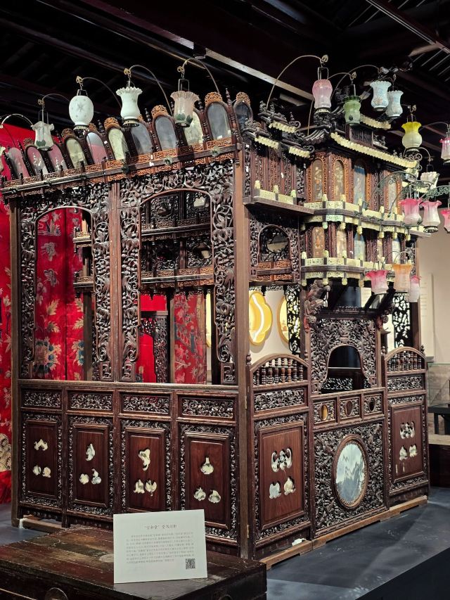 5分 超棒中国昆曲博物馆·全晋会馆。用紫檀木和黄杨木镂雕而成,配以玻璃莲花彩灯的小屋子叫作“堂名担”,是昆曲博物馆的镇馆之宝。“堂名”是一种坐唱演出形式,堂名演奏时临时搭起的乐舆,可以拆卸、组合。拆散后装在箱内,方便肩挑,故称“堂名担”。