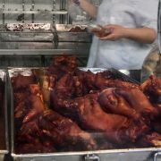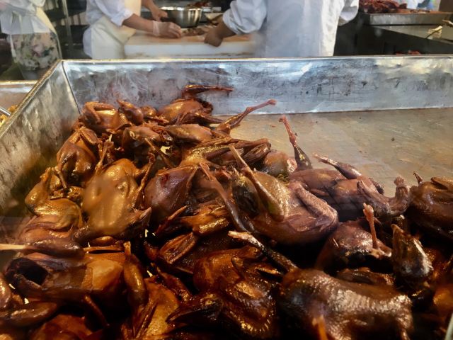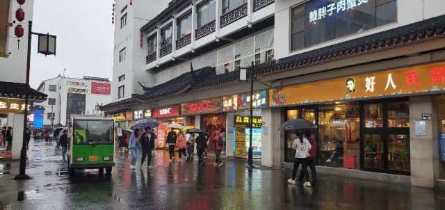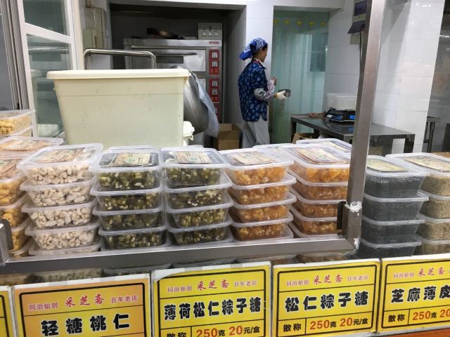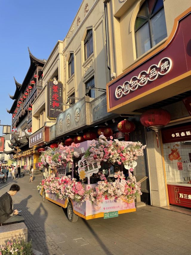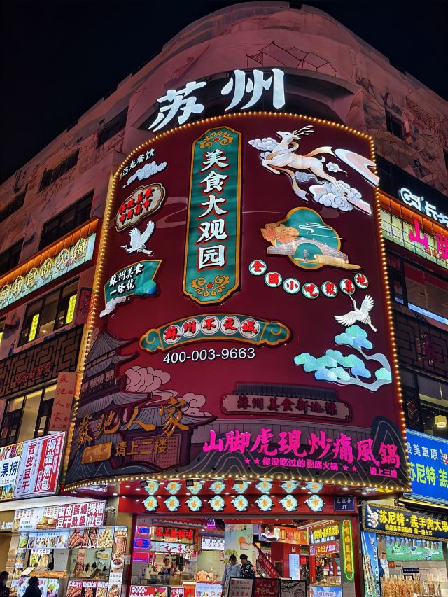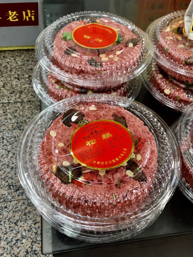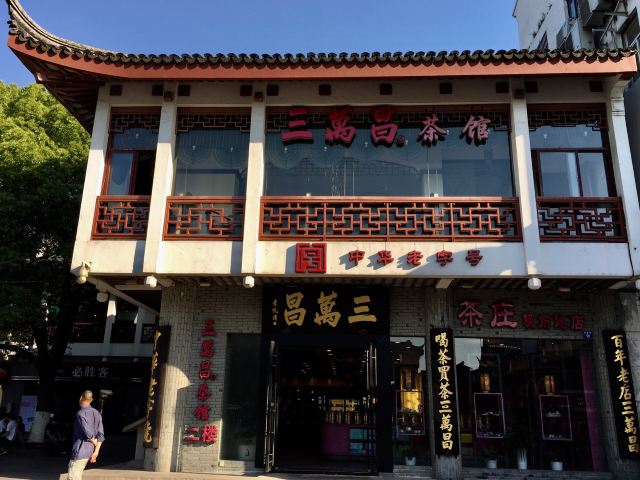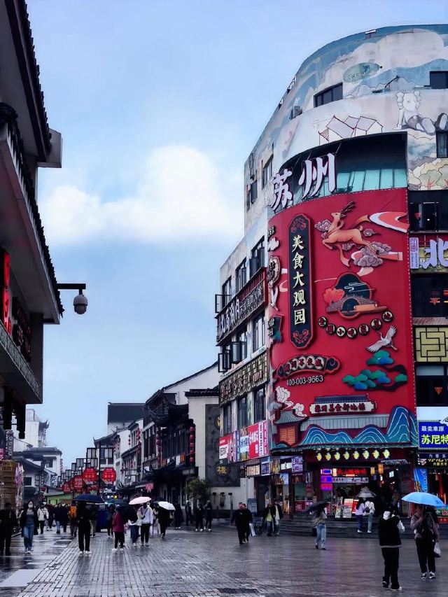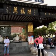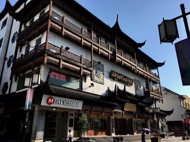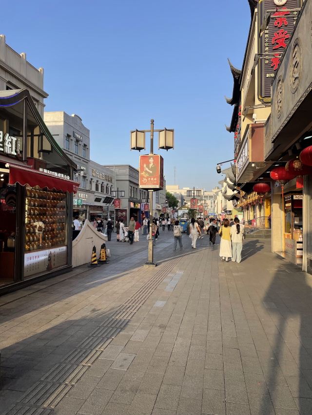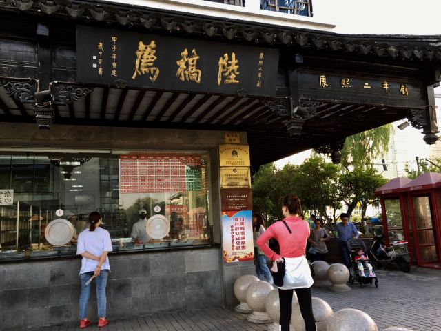 到观前街首先是冲着它的美食,这里百年老店云集。松鹤楼菜馆(太监弄72号)有200多年历史,还穿越到小说《天龙八部》里充当了乔峰和段誉结义的地方,苏帮菜里的松鼠鳜鱼,正宗的要到松鹤楼吃,是该店的招牌菜,其他如清炒虾仁、响油鳝糊、东坡肉等也很好吃。得月楼(太监弄43号),老电影《小小得月楼》里出现的便是这家餐馆,做的也是老牌苏帮菜。然而这两家动辄一道菜一百来块的价钱让不少游客望而却步,陆稿荐(观前街8号)的酱汁肉,绿杨馄饨(碧凤坊84号)的价格则要平民化许多。