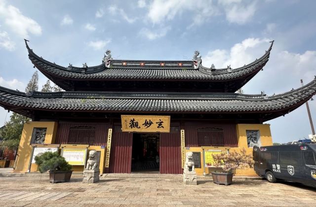 在观前街你还可以参观位于街道正中央的玄妙观,观前街便因地处玄妙观的前面而得名。这座道观始建于西晋咸宁二年(公元276年),南宋淳熙六年(公元1179年)重建,主殿三清殿西边能见到“镇观之宝”老子像碑,碑上老子画像是唐代吴道子的手笔,画像上方的文字为唐玄宗所题御赞,唐代大书法家颜真卿书写,由宋代刻石高手张允迪摹刻。