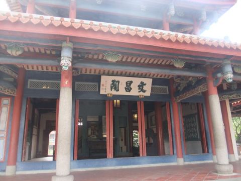 参观完海神庙,来到北面的文昌阁,它是清朝光绪年间修建的楼阁,如今供奉着文昌帝,二楼供奉着五文昌之一的魁星爷,他是科举时代的考试神。从文昌阁出来绕道后面,是普城稜堡残迹,也是赤崁楼中具有史料价值的遗迹。