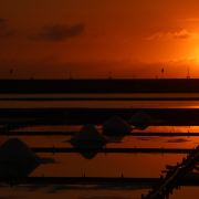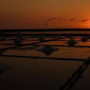 每日夕阳照射在瓦盘盐田上倒映天空的美丽光彩,搭配北门潟湖一望无际的天际线跟云彩,让盐田边总是摆满了摄影脚架,赏景的游客更是络绎不绝,不但恢复了居民的生活回忆,也成为游客体验晒盐、挑盐、收盐乐趣的地方,每日都有不同风貌的井仔脚盐田夕阳,是来到台南滨海不可错过的景点。