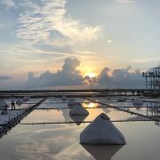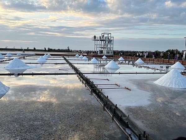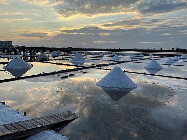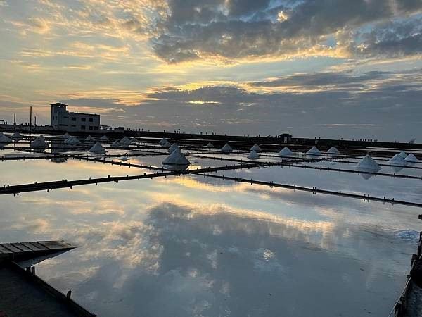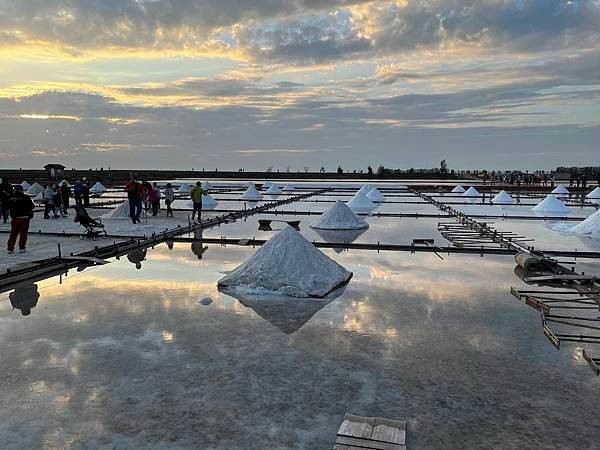 3分 不错在这里我们可以体验一下晒盐和观看美丽的夕阳 大概是星期六的关系,再加上这里是十分出名的旅游景点~人真的很多! 这是北门的第一座盐田,同时也是最古老仍现存的盐田遗址 像马赛克般的盐田看起来其实有点像艺术装置啊 首先是 - 结晶池 ,现在开放了部份区域来做盐田体验区 让游客们可以 "落田" 体验一下怎样晒盐、挑盐、收盐 另外较出的位置还有蒸发区~我们也可以走出去近看喔 亦可以走上高台俯瞰一下盐田,那会是另一种风景。不过感觉这高台不是太稳阵,风在吹时有摇晃感~也见到某些钉露出了半截 在等候夕阳期间可以到店内逛逛 里头卖的东西和之前介绍过的夕游出张所差不多 差不多时间就要去找个好位置!为了补足最美的夕阳,已经看到满满的摄影脚架!一字排开~十分壮观的耶!所以别太迟才到,不然有机会站不到第一排的位置哟 天上的云彩因日落染成橙红色,而夕阳照射在瓦盘盐田上反映出来的倒影亦十分美。整个过程很快,但每隔一小段时间的变化都有不同,这就是大自然的魅力啊 最后打算离开的时候还遇上了火烧云呢!
