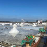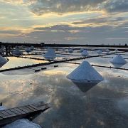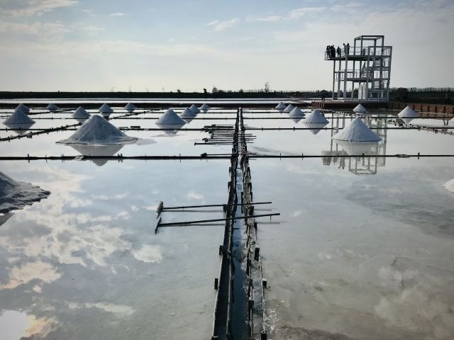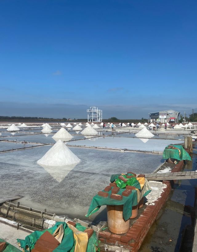 3分 不错早期曬鹽的地方,引進海水然後靠日曬海水蒸發後就留下結晶的鹽,但是還是不能食用,要再加工讓髒的物質過濾掉才能變成食用的鹽。