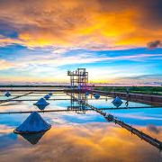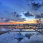 5分 超棒「井仔脚瓦盘盐田」是北门的第一座盐田,也是现存最古老的瓦盘盐田遗址,原为清领时期的濑东盐场,1818年迁此至今未再移位,而且清一色为瓦盘盐田,呈现出马赛克拼贴般的美丽艺术,后因人工成本过高的原因,于2002年结束了长达338年的晒盐业,使原来遍布此处的盐田荒废了一段时间,后来为延续盐业文化而将盐场复育,现已成为台南滨海最具特色的景点。