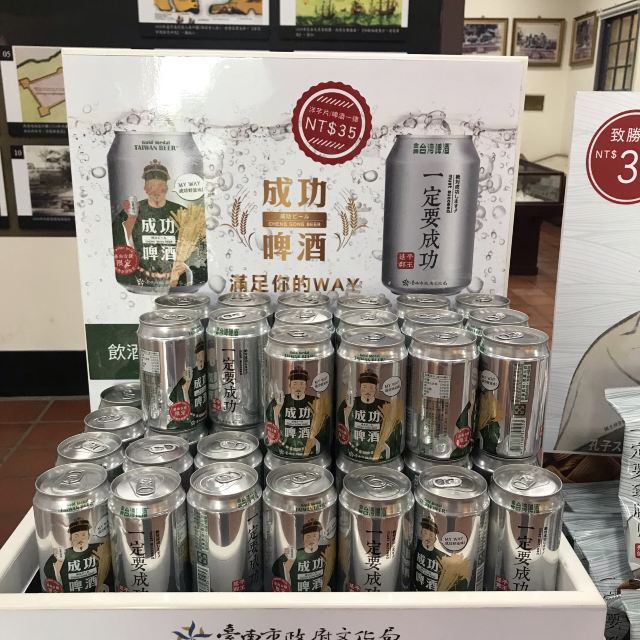 古堡上可以参观一下当时往来贸易的商船中出土的瓷器,以及郑成功收复台湾时的战舰模拟图,我比较感兴趣的还是台南的一些文创产品,成功啤酒,至圣点心面,台湾地图的拼板感觉都很棒。