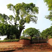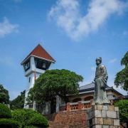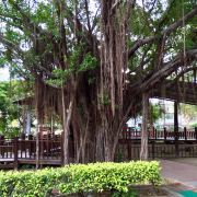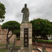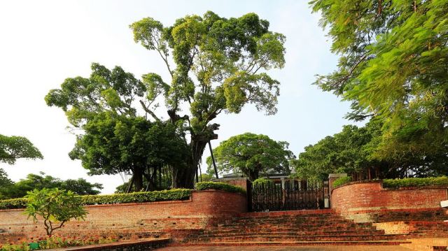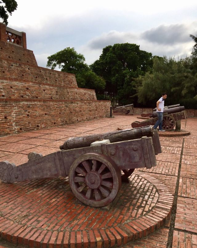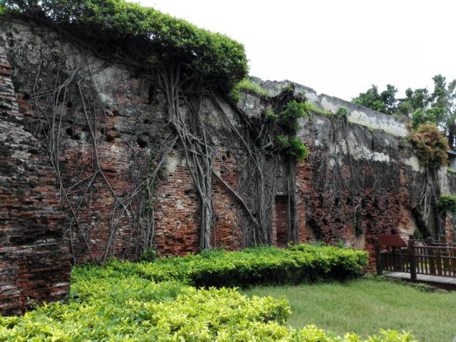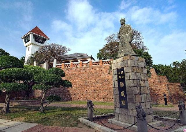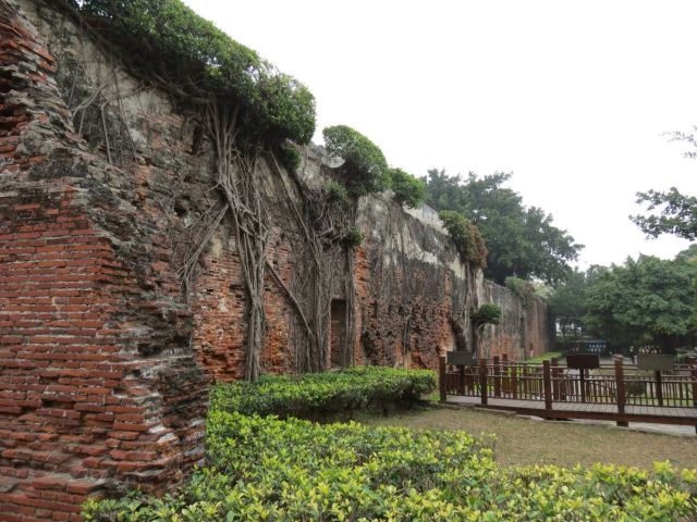 安平算是台南的一个港口,荷兰人当时殖民时期在这里建了热兰遮城,古堡旁边就是热兰遮城的博物馆介绍,安平夕照在1953年被评为台湾8景之一,古堡上还能看到架着的大炮。古堡旁有一面墙标记着台湾城残迹,历史的滚滚车轮让榕树和城墙融合为一体。因为郑成功收复了台湾,所以台湾人民把郑成功的塑像树立在古堡边供人纪念。