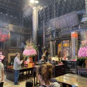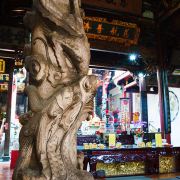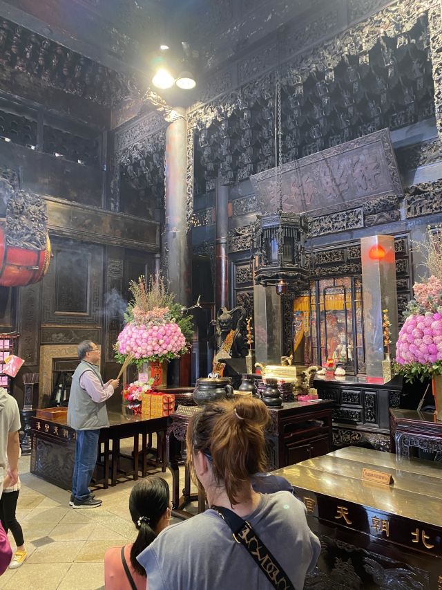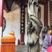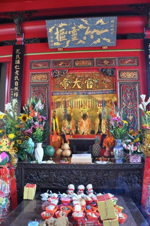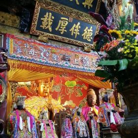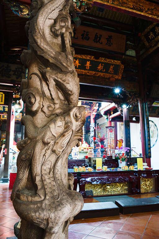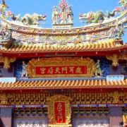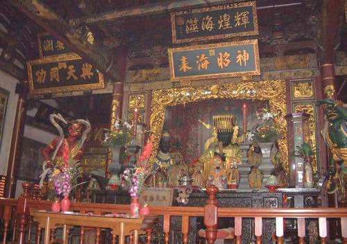 另外,该庙还有一个特色就是除了正殿的妈祖称为大妈外,还配有所谓的“二妈”、“三妈”的妈祖神像,造型仅为大妈的一半,脸色为粉红色,两眼张开,与妈祖神像眼睑呈下垂状不同,有时间不妨也参观一下。