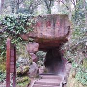 甘露岩洞的上下为砾岩,中层为砂岩,寺内岩层滤净、渗出的泉水清甜甘冽如甘露,寺庙因此称甘露岩寺。