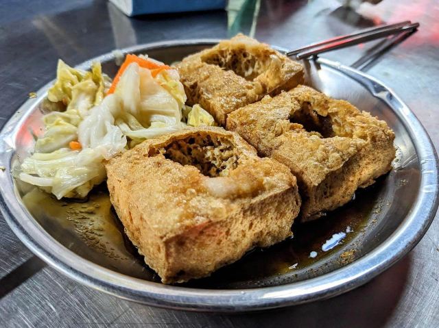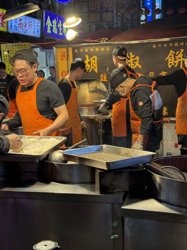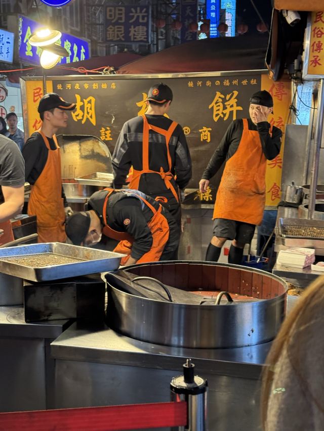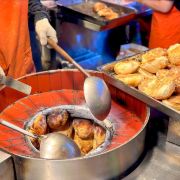 饶河街观光夜市非常有名的要数福州世祖胡椒饼了,无论工作日还是周末,至少排队一刻钟才能吃的上。另一家明星摊位是“蚵仔面线东发号”,细看这面线,蚵仔饱满新鲜,面线有淡淡焦香味。除了面线,肉羹和油饭也算是招牌菜。喜欢食肉的朋友,一定要去光顾“陈董药炖排骨(饶河街店)”。排骨份量很足,在锅中炖得酥烂,汤汁鲜甜,健康又美味。
