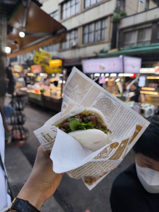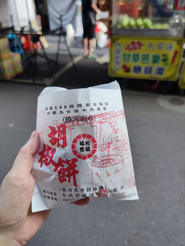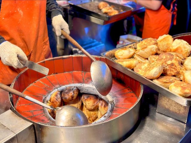 在市场入口处有一个罐子里,米其林获得Bib Gourmand奖的烤包子。如果晚上来,很多人会排队吃饭。就个人而言,味道很好。馅料有胡椒香。但是面团很厚