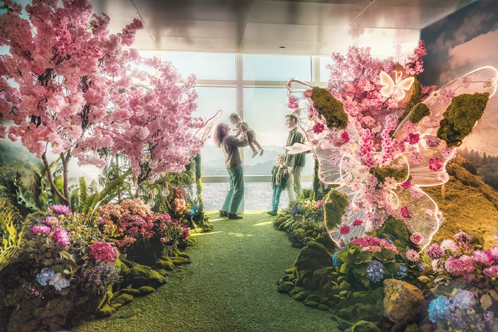 【春季限定|漫步阳明山梦幻湖 × 樱花蝶舞】 迎接春日苏醒,本季特别以「阳明山梦幻湖」为设计灵感,将北台湾令人向往的山林胜景重现于89楼观景台。
