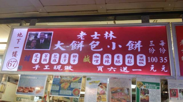 老士林大饼包小饼——如果说大肠包小肠全台都能吃得着,那大饼包小饼士林夜市非常正宗。小饼炸得酥香包在厚实面皮中,小锤子一敲能听见美味诞生的声音。从开始的芝麻、红豆发展到现在的花生、芋头、豆沙、椰子、咖喱、麻辣、香酥、肉松、黑胡椒等10种多口味,选择多多。