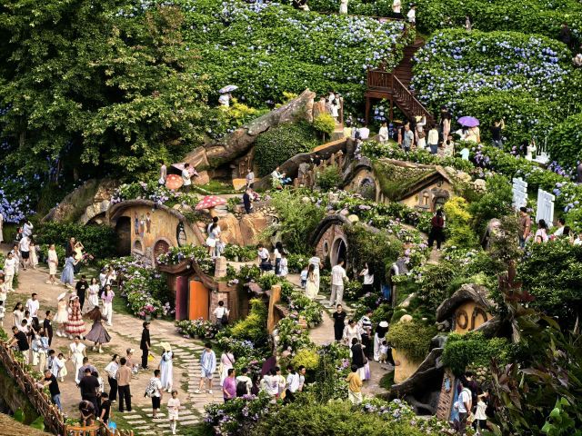 温州的筱村公社景区位于泰顺县筱村镇,是一个集民宿、农家乐、果园采摘、旅游观光于一体的旅游胜地。其亮点包括独特的山水田园风光、霍比特人小屋、绣球花海以及伴山云居民宿等,为游客提供了丰富的休闲度假体验。此外,景区还保留了传统的农耕方式和古朴的自然村落风貌,让游客在享受美景的同时,也能感受到浓厚的乡土气息和历史文化底蕴。