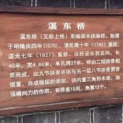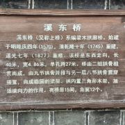 溪东桥位于泗溪镇,因横跨镇内东溪之上而得名。此桥建于明隆庆四年(1570),清乾隆十年(1745)重表,道光七年重修。整个桥长41.7米,宽4.86米,高10.35米,桥屋15间,中央三间是宫殿式主楼,构架飞檐翘角。桥栋上面塑造“螯鱼双吐水”,栋下塑造“唐僧取经”及梅、兰、竹、菊等诸多工艺,形态栩栩如生。桥头飞挑,颇有吞云吐雾之势。桥面檐下,三间藻井,构造工艺精致古朴,使桥身显得更加秀丽堂皇。