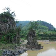 白鹤松(岩):位于白鹤峡口。岩锤形,高约20米,临水而立,犹如一位[独钓寒江雪]的蓑笠翁,而岩顶却生长着一棵不老松,与它边上的另一株同龄松相对应。