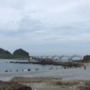 三仙台岛因海水侵蚀成为离岸岛,1987年兴建八拱跨海步桥,衔接三仙台和本岛,是东海岸极为著名的景点。