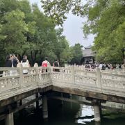 微信小程序晋祠公园位于山西省太原市晋源区晋祠镇,是太原市的大型公园之一,也是晋祠天龙山景区的主要组成部分。园内主要景点有伏龙山:园内假山,山的影贵半腰,嵌石题书“伏龙山”。山脚有石洞流水,水从石龙口中淌出,流入池中。陶然村:位于仙翁阁东北,是荣鸿胪的别墅,当地人称之为荣家花园,占地面积17亩,始建于民国十六年(1927)。主建筑坐北向南,院中套院,全院建筑古朴、厚重,亭台楼榭布局合理。陈家息庐:民国时期陈学俊的私人别墅,新中国成立后并入晋祠公园。坐东朝西,北边建有砖木结构平房一排,东、南各建二层楼一座。龙兴晋阳群雕:雕塑于2003年,是李世民及其功臣的塑像,高6.99米,宽9.5米,重2.5万公斤,是太原市最大的青铜雕塑之一。十字桥:仿鱼沼飞梁而建,是中国少有的一种十字桥梁形式,石桥面中高两侧面低,木斗拱与梁枋改变了石桥面的推力传递方向,使重量垂直传到桥柱上。台骀泽:1959年依地形地貌挖掘而成,占地面积6万平方米,东面凹地大面积种植莲花,东南处建界湖亭一座,西岸设映月楼等建筑。